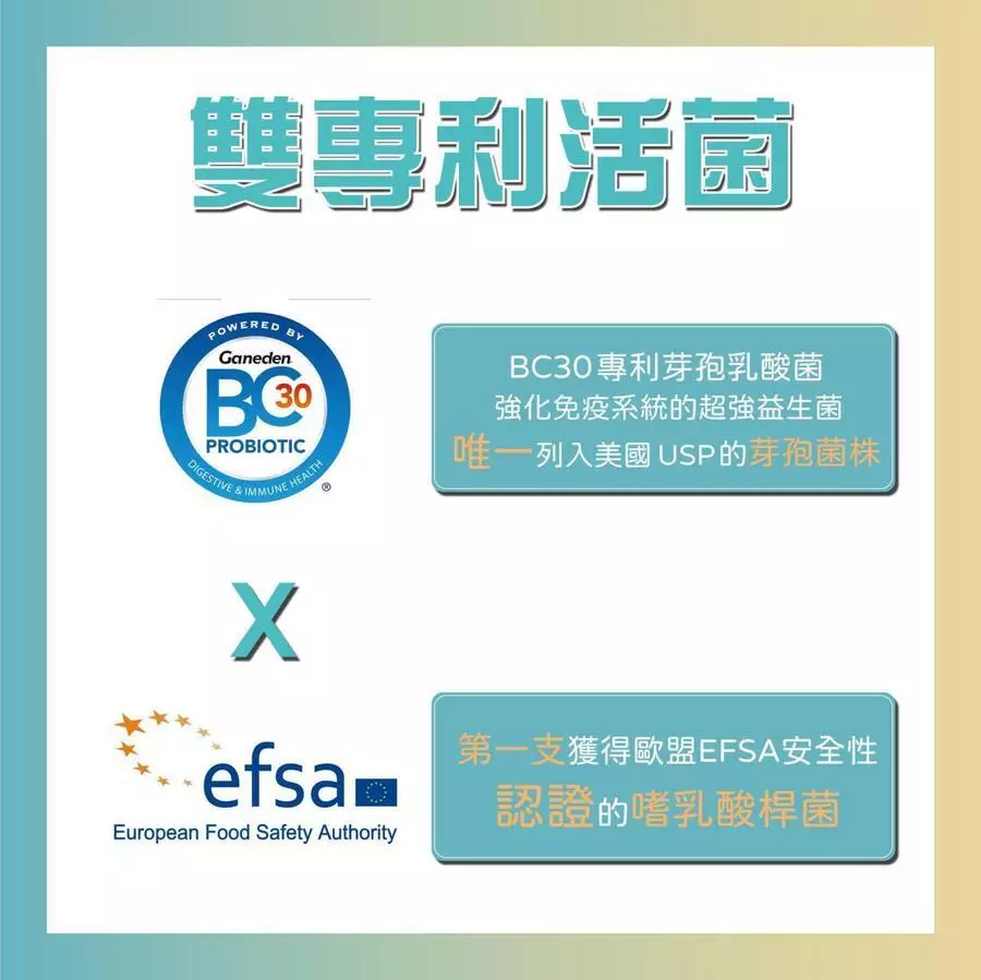 【雙專利活菌,強化腸胃健康】