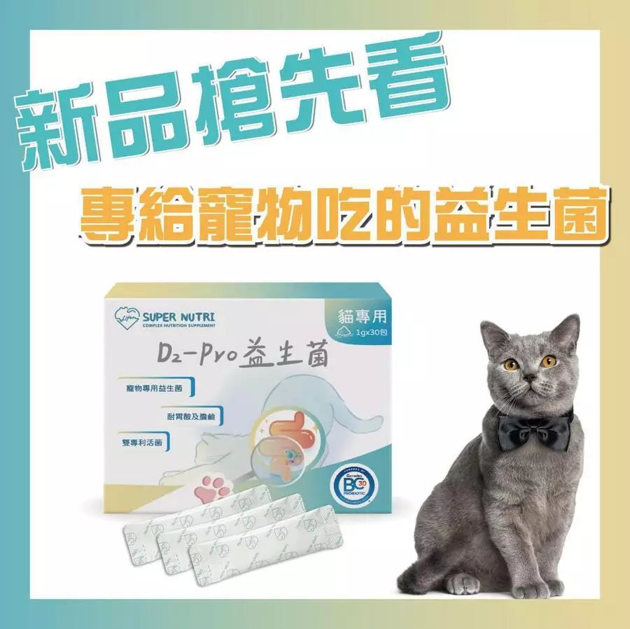 D2-Pro益生菌是專為貓咪設計的全方位健康守護者,不僅能調整腸胃道機能,還能有效改善便秘、軟便、消化不良等常見腸胃困擾,讓毛孩維持良好的消化健康和生活品質。其特別配方更含有多種有益菌株,溫和呵護貓咪腸胃,提升免疫力和整體健康。此外,D2-Pro益生菌在食用上非常方便,可以直接單吃、拌入飼料、或是添加於鮮食,讓繁忙的飼主也能無負擔地為貓咪提供最好的照顧。選擇D2-Pro益生菌,讓您的毛孩天天都能活力滿滿、健康滿分!