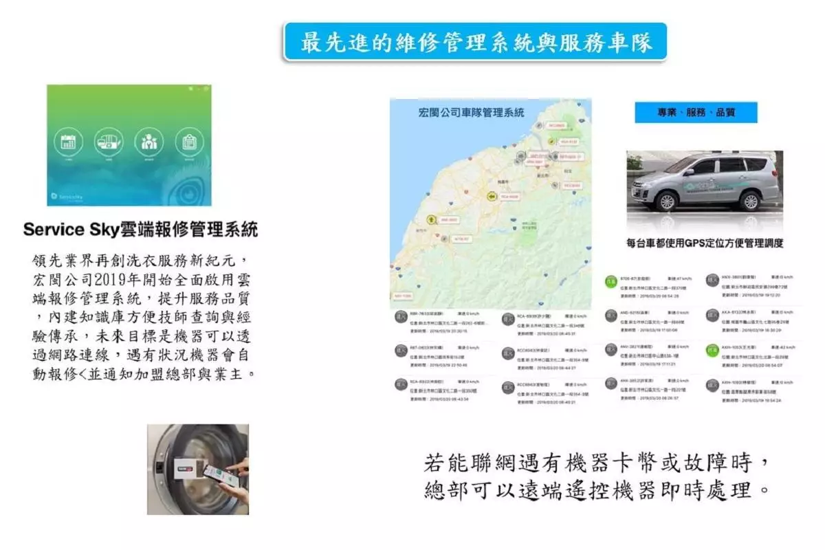 宏閩洗衣設備有限公司於1998年投入自助洗衣店連鎖產業,20多年來致力於洗衣產業創新服務。想要有競爭力就要有特色,複合式型態與咖啡店、美髮業、書店等結合,等待的時間不再漫長,洗衣服也可以變得輕鬆悠閒。