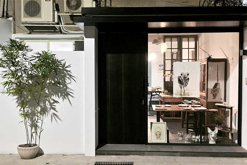 有魚陶藝位於台北市交通便利的信義、敦化南路交口,從敦化南路綠意盎然的台灣欒樹安全島,轉進老公寓林立的巷子內,工作室黑瓦白牆的外觀,搭配門口的翠竹、牆上的紫藤、院子裡的鹿角蕨與金魚缸,立刻讓人心神都安靜下來,暫時遠離都市的喧囂。陶藝教室內,老師蒐集了各式老櫥櫃、自在勾、鯉魚旗、搭配風格各異的陶藝作品與稀奇古怪的老道具,以及小角落躲藏的樂高玩偶,打造出一個舒適又混搭的創作空間。