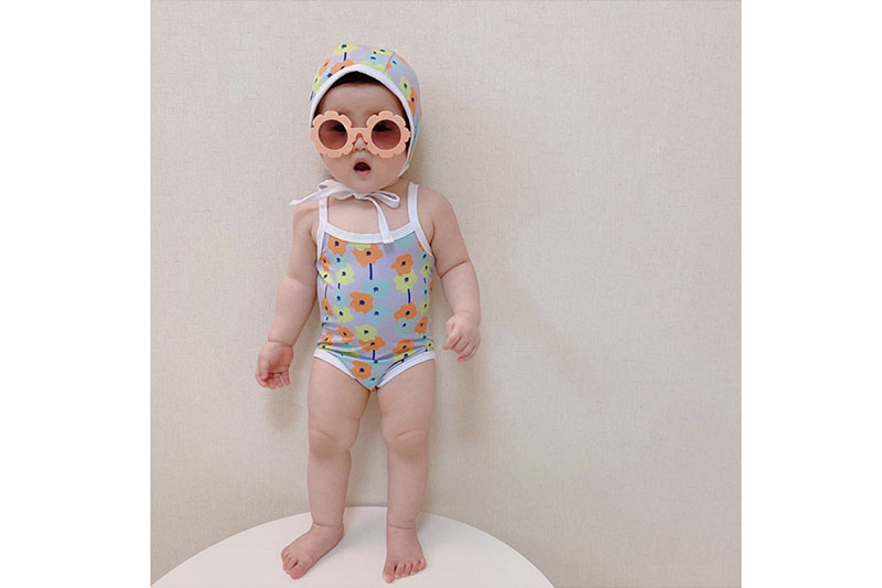 嬰幼兒寶貝最適合這種細肩帶連身式泳裝,露出肥肥嫩嫩的小手小腳,搭配綁帶泳帽,在泳圈上跟著水波搖搖晃晃~那畫面真的是太融化太可愛!