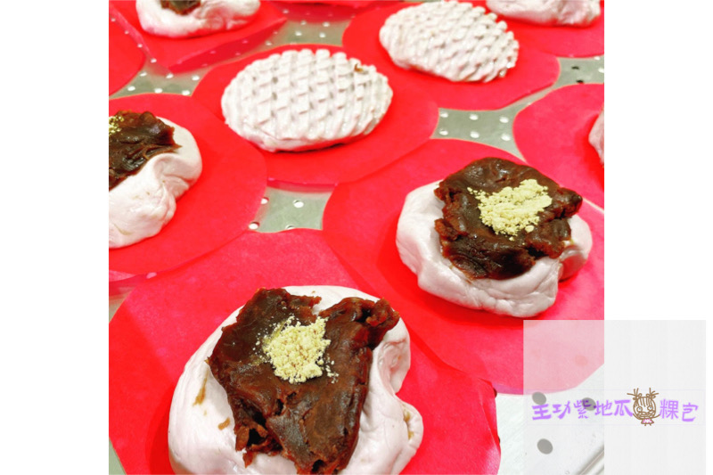 咬一口,粿皮香糯Q彈,內餡裡的香菇肉絲香氣十足清爽不油膩,是顧客回購率相當高的人氣商品;素食內餡中的紅豆泥餡吃起來更是過癮,咬到中間厚實感的紅豆餡及黃豆粉香氣,為舌尖添加不少風味,喜歡紅豆的粿迷千萬別錯過。